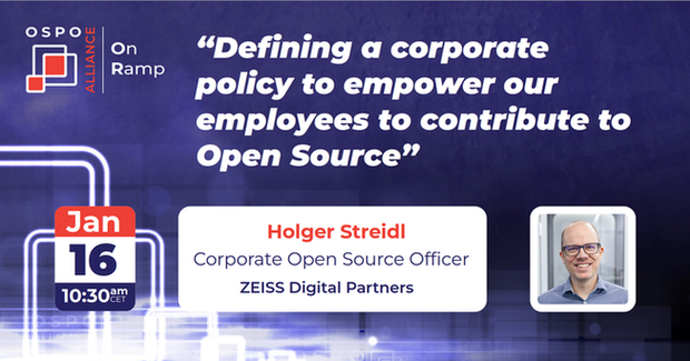 In this very first OnRamp webinar session of the year 2026, we will discover how a nearly 200-year-old innovator like ZEISS is embracing open source. Holger Streidl will introduce their journey toward empowering developers, navigating organizational and legal challenges, and building a sustainable, risk-aware Open Source culture.